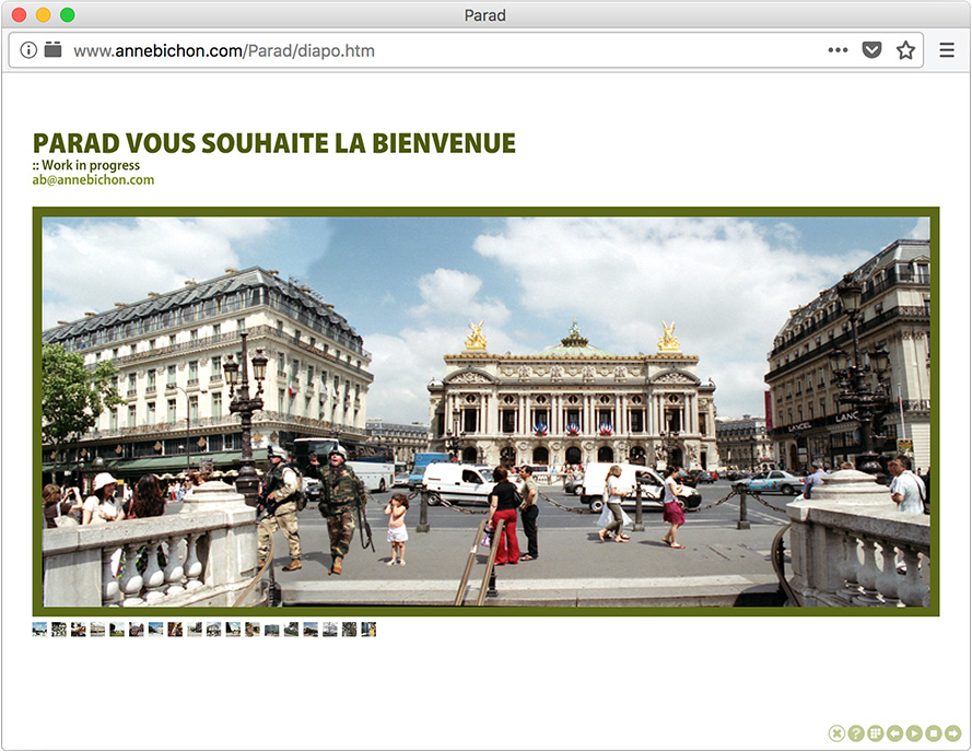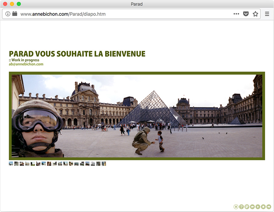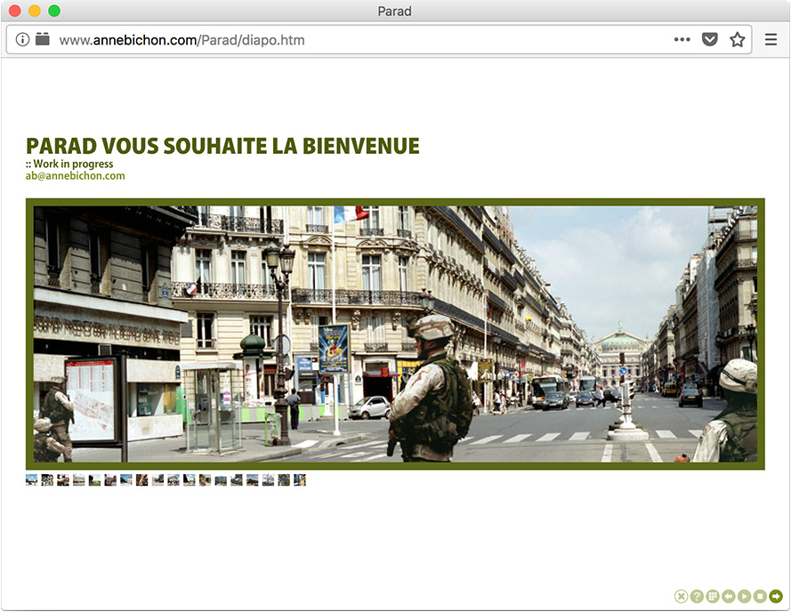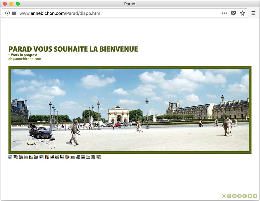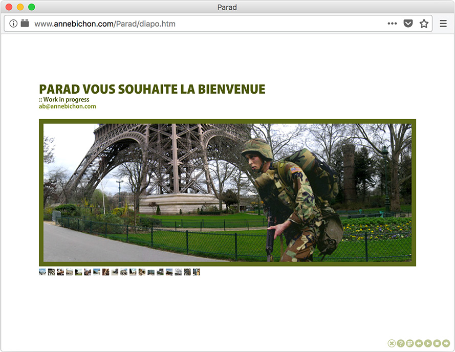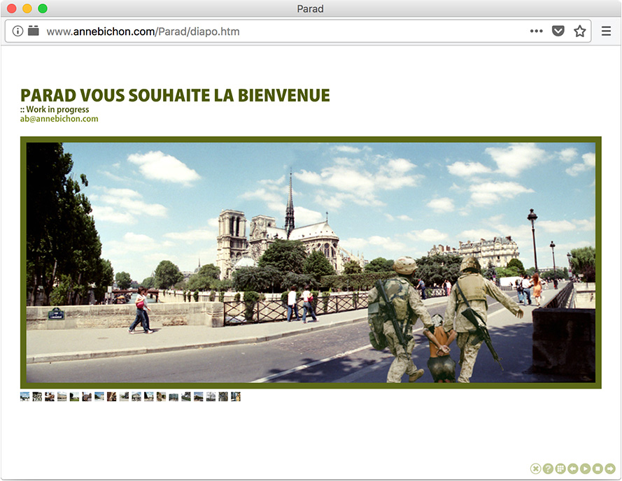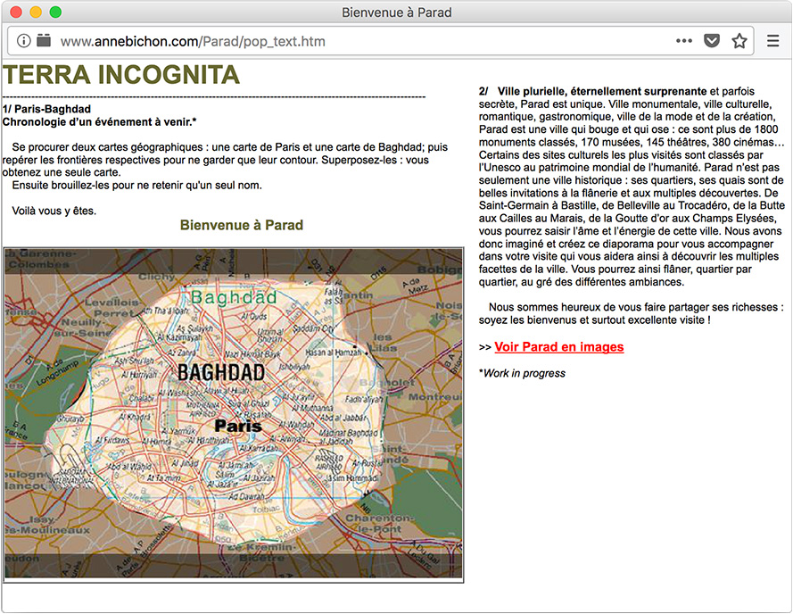 Partant du constat que les frontières géographiques de Paris et de Bagdad sont quasi identiques, Anne Bichon transpose une occupation américaine dans la capitale française.