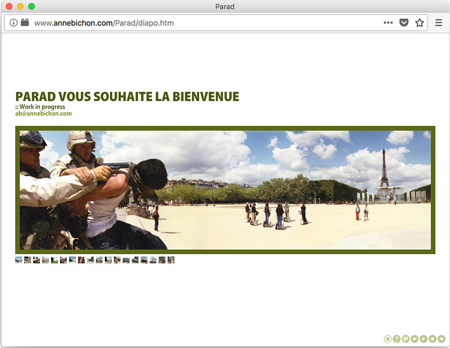 Starting from the observation that the geographical borders of Paris and Baghdad are almost identical, Anne Bichon transposes an American occupation in the French capital.